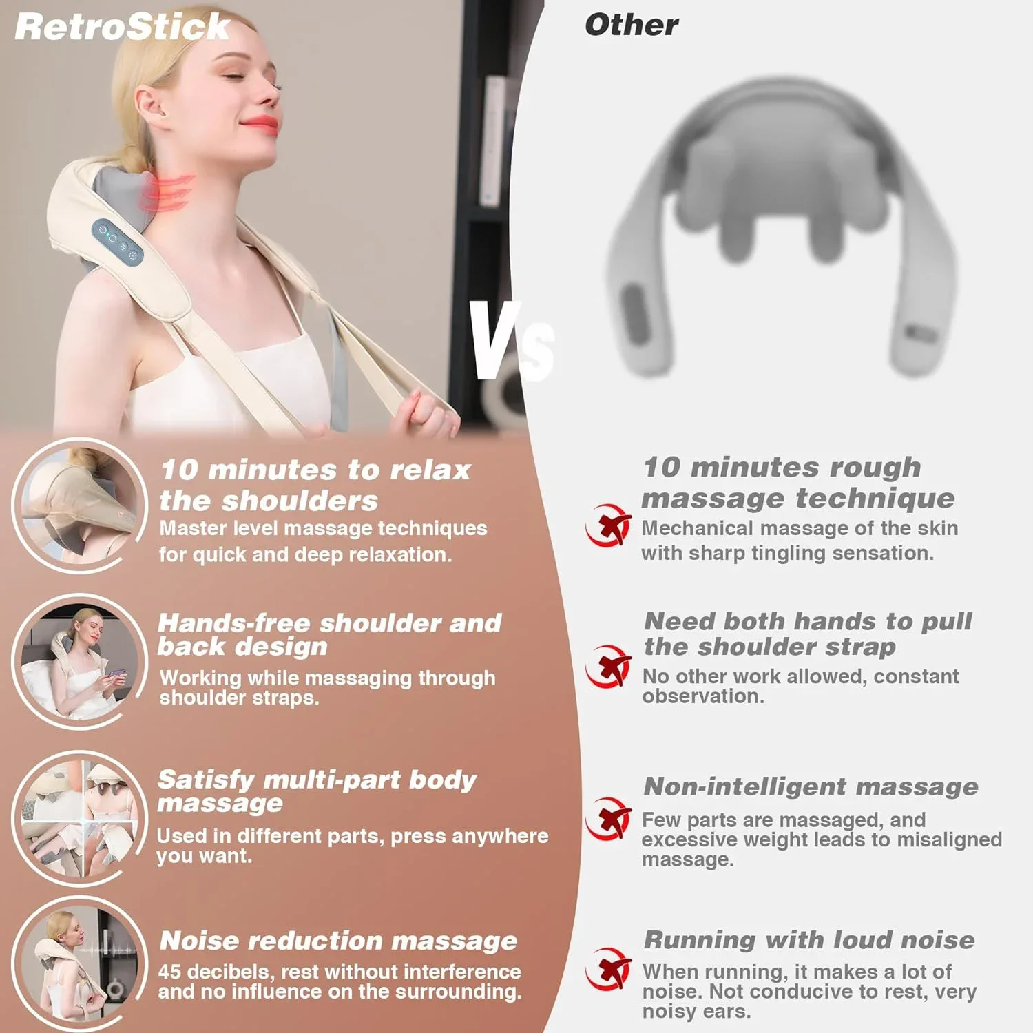 • Heat Function :Equipped with a 45°C hot compress heat feature, this massager not only provides soothing touch but also enhances blood circulation, promoting overall wellness.