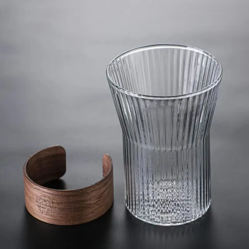 350ML Japanese Style Glass Coffee Mug Walnut Cup Sleeve Glass Cup Glasses Coffeeware Tea Mugs Beer Mug