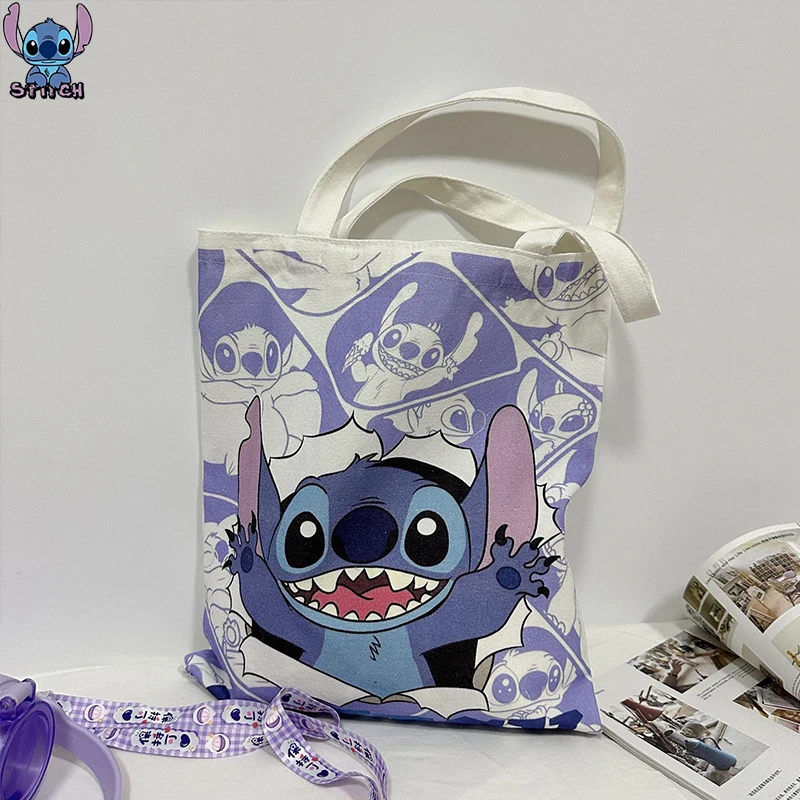 Disney Accessories Stitch Handbag Canvas Shoulder Bag Crossbody Shopping Bag Large Capacity Lilo and Stitch Student Storage Bag
